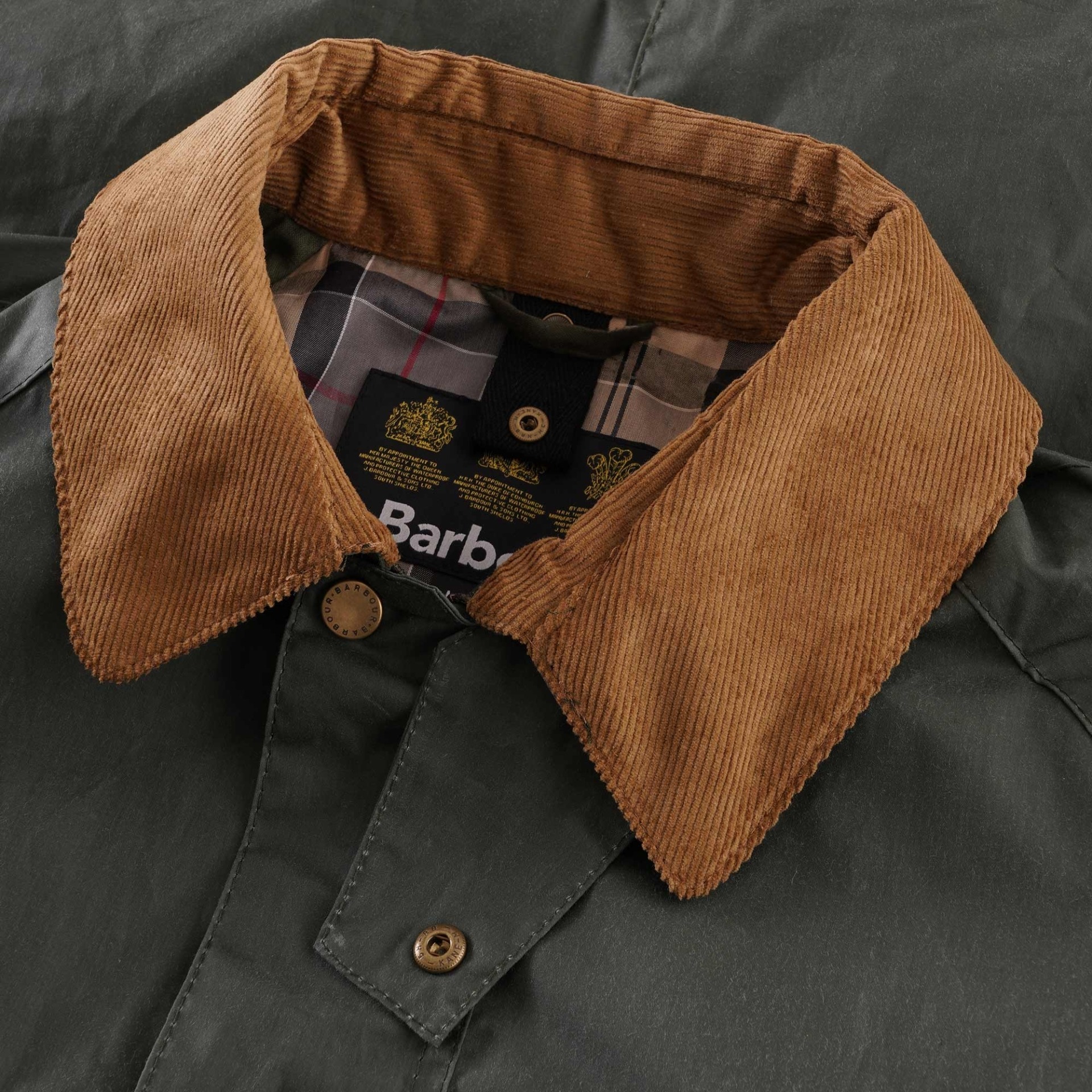 MODELO HUSKY DE BARBOUR, NYLON ULTRA LIGERO EN COLOR VERDE Y CUELLO DE PANA CAMEL