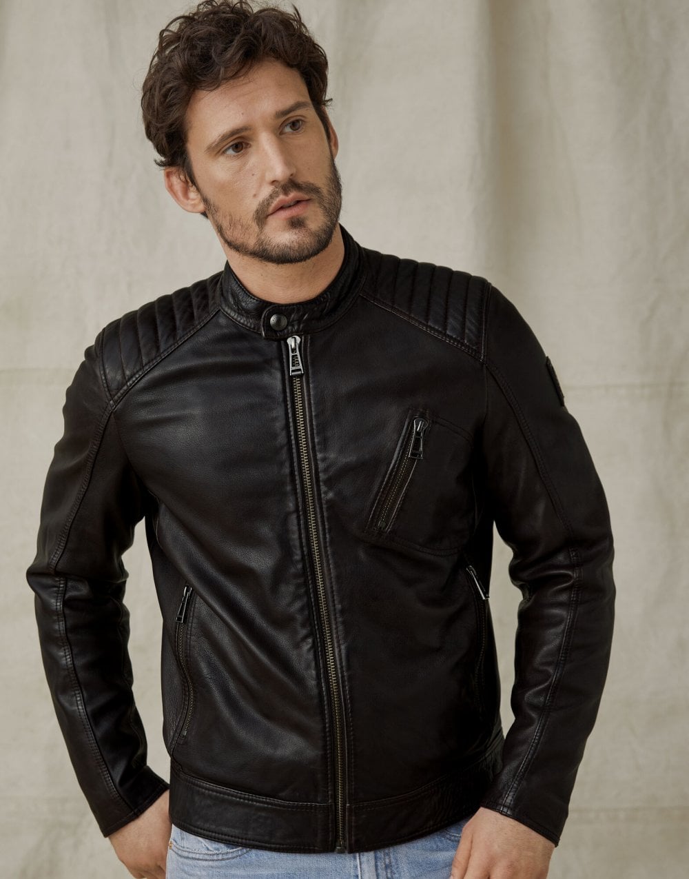 Chaqueta de piel tipo cazadora y motera de la casa Belstaff
